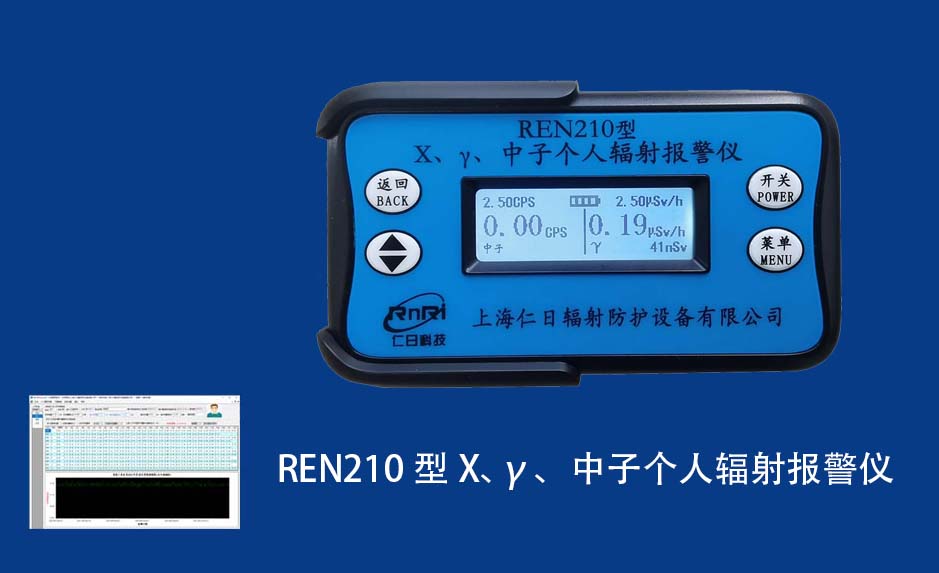 REN210型X、γ、中子個人輻射報警儀內(nèi)置SiPM和鋰玻璃晶體組成中子探測器儀器,采用反照率方式探測中子射線,同時也能探測X、γ射線。因此它可同事監(jiān)檢測X、γ、中子三種射線。能顯示工作場所的劑量當量率和累積劑量,更換電池時,日期及累積數(shù)據(jù)能永久保存。可選配RenRiPersonal個人劑量管理軟件,該軟件可存儲多個人的歷史數(shù)據(jù),能記錄日累積、月累積、年累積、輻照時長、計算平均劑量率、扣除或不扣除本底輻射,且以文字和圖譜的方式展現(xiàn)數(shù)據(jù)。廣泛應用于環(huán)保、化工、水泥、煤礦、土木工程、石油、醫(yī)院、疾控、進出口商檢、核電、加速器、機場、中子源庫和其他安檢、邊境控制海關(guān)檢測等領(lǐng)域中的工作人員進行個人安全防護監(jiān)測及放射性提示。